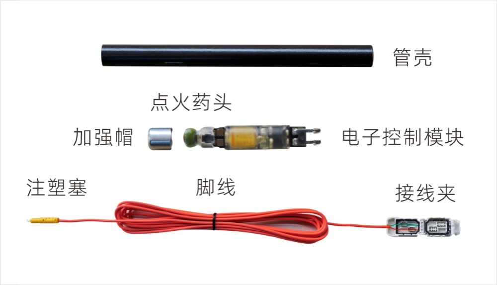 工业电子雷管主要由脚线、电子延期元件、管壳、增强帽、起爆药、猛炸药组成,生气历程是通过专用起爆装备对电子雷管举行检测、充电后发出起爆指令,接着由电子延期芯片内部电路对电子雷管的延期时间举行控制,然后由电子延期芯片内部起爆电容放电引燃燃烧药,末段输出火焰冲能引爆增强帽内的起爆药,继而引爆壳内猛炸药,从而使整个雷管完全爆轰。用以直接或间接起爆种种工业炸药、导爆索、塑料导爆管等,具有网络诊断、抗杂电流、抗静电、抗射频、高精度、延期可调、有用镌汰爆破作业时的地动波、提高爆破效率等特点。