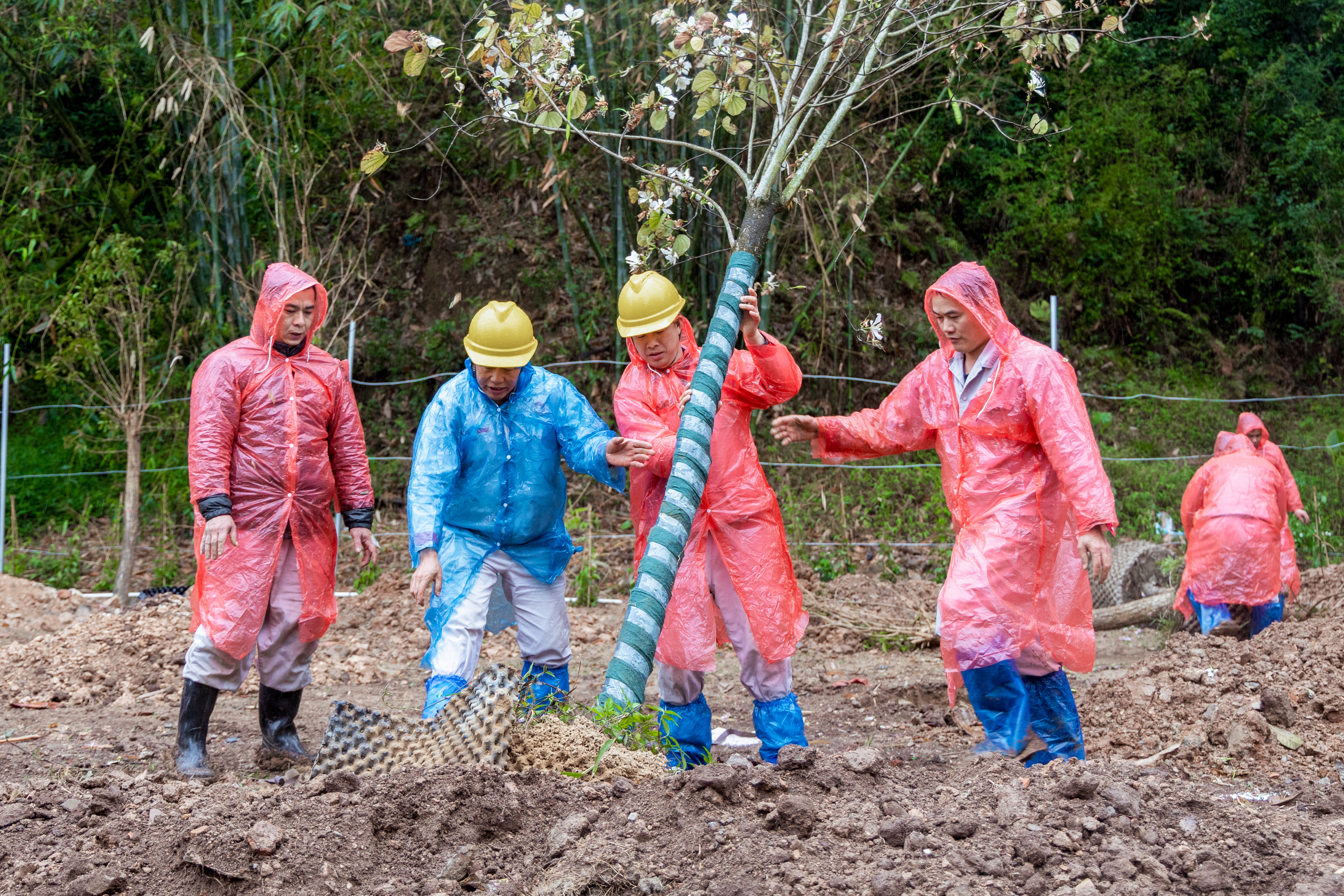 植树现场,各人热情高涨,挥锹铲土、扶苗填根、提水浇灌,在瑶乡早春的土地上种下了40株紫荆与40株黄花风铃木,以“党旗红”引领“生态绿”,配合打造了一片象征政企同心、聚力生长的“政企共建先锋林” ,配合绘就绿美瑶乡新画卷。